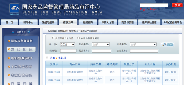 HANSOH PHARMA'S IND APPLICATION FOR TWO CLASS 1 BIOLOGICAL INNOVATIVE DRUGS ACCEPTED